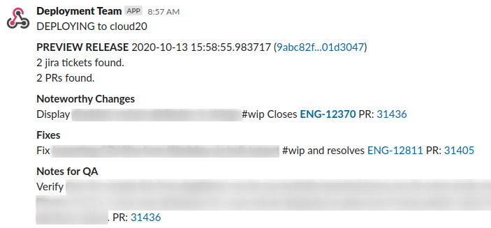 A: Semantic-release's slack plugin as of 05/21 does not generate an extended changelog. Semantic Release does not have a plugin for tagging github PR's or tickets either, as far as I am aware.