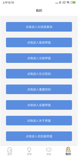 • 常用页面模板:启动界面,主页界面,登录界面,注册界面,关于界面,浏览器界面