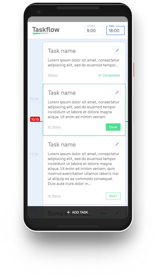 - Auto change tasks duration (if "Done" pressed later or earler)