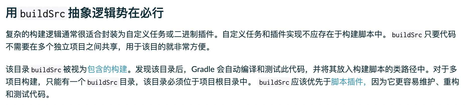我们来看看gradle官方文档gradle文档 ,它和buildSrc相比较,它并不会重新构建整个项目,所以对比下来性能更高些。