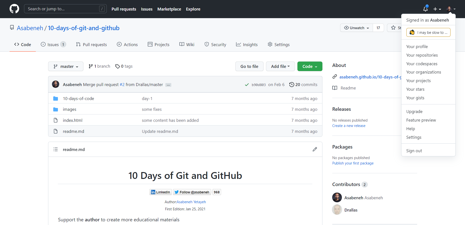 git merge branch-name # to merge a branch to the current branchFamiliarize yourself with your GitHub account and available repository features. Git has account setting and repository setting. Navigate through the available features.