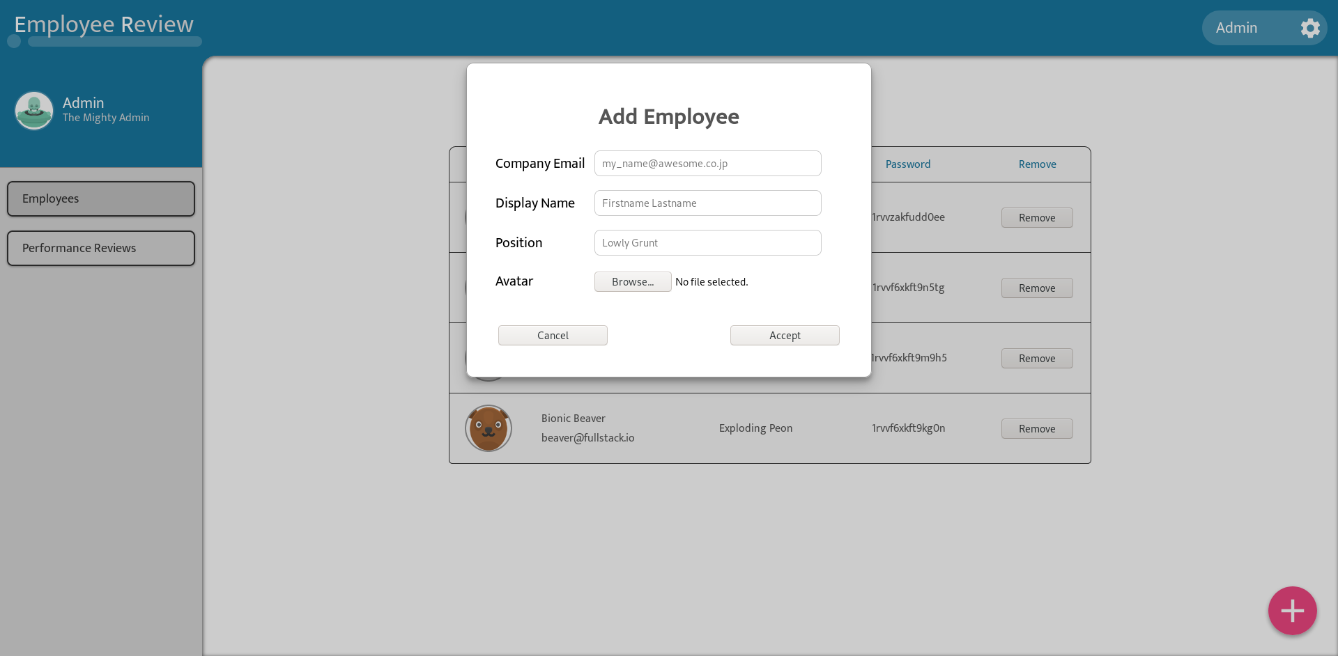 In the interest of time I trimmed the update employees to be able to write information to the database once, and then not have to worry about it being consistent with subsequent updates. And for assigning employees to participate in other reviews, I cut corners by allowing everyone to see all of the reviews and comment.