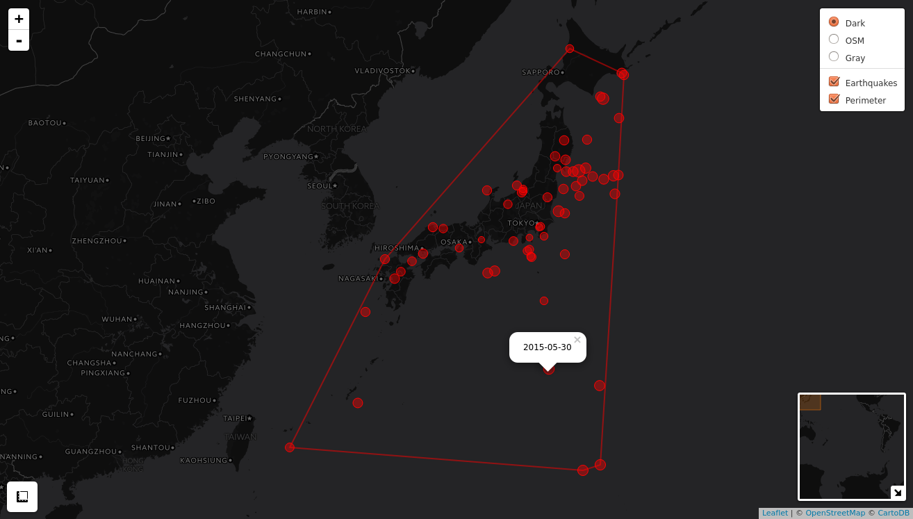 theme_timeline()Furthermore, it provides with functions to display the epicenters in an interactive R leaflet map: