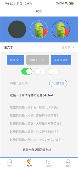 • 常用自定义View:圆形ImageView,验证码点击倒计时View,带清除按钮的EditText,正方形的FrameLayout、LinearLayout、RelativeLayout、ImageView