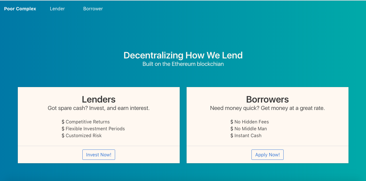 A decentralized P2P lending platform built on the Ethereum blockchain.