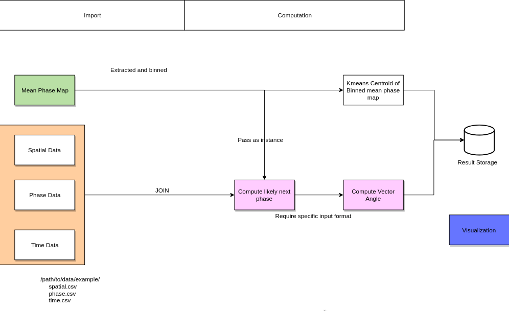 Let say the spike that just happened at t0 was generated at 30 degree (0.5236 rad) of the ongoing gamma cycle. We know the avatar's spatial position (X,Y). We also know that next spike t1 will be generated at 45 degree but we don't know at what spatial position. So we are considering the next 6 spikes (where 6 is an arbitrary number) or a 5 x 5 m area around the spike (where 5 is an arbitrary metric) and try to find a tile with the average phase that best fit to the phase of next spike. That tile would be our best guess for the next position of the avatar.