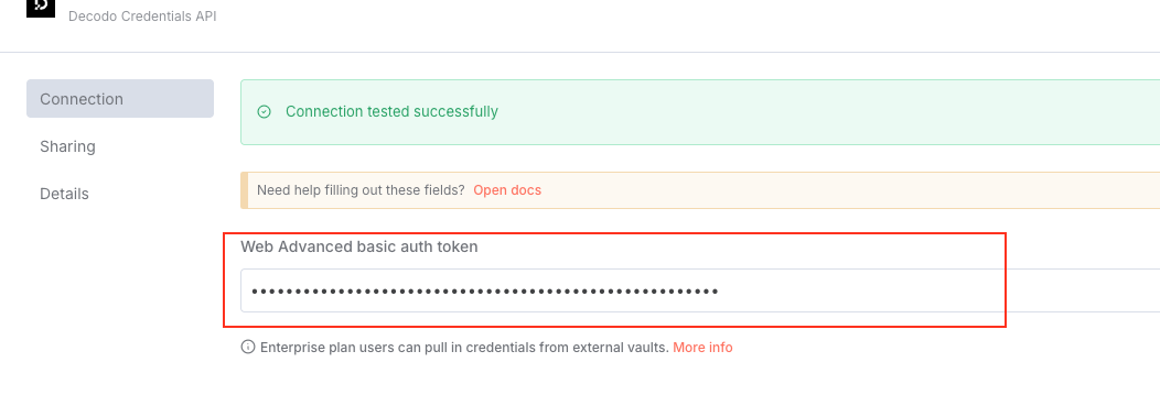 The node requires a Decodo Web Scraping API Advanced plan. You can get started with a free trial on the dashboard.