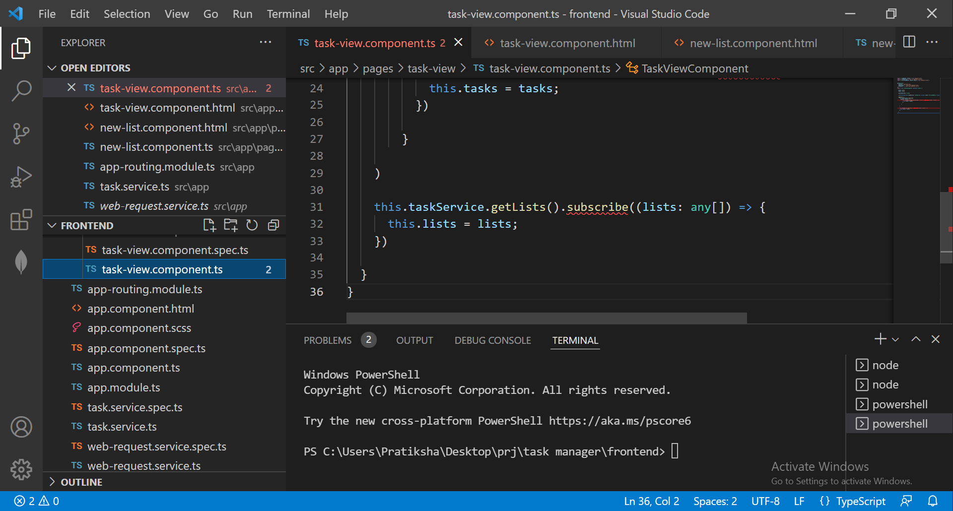 Hey. I am getting an error saying 'Property subscribe doesnt exist on type void'. We created the subscribe in task-view. omponent  ts.