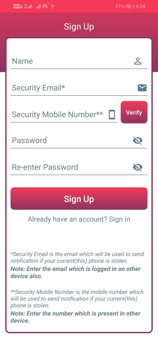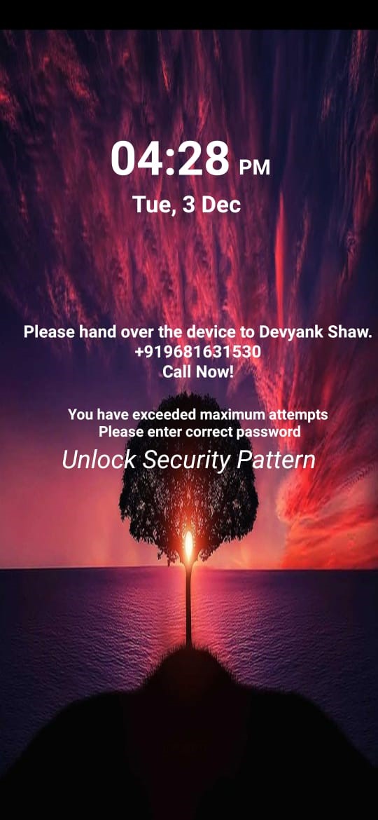 An app which adds a security to the phone where if the user's phone is stolen then the thief cannot switch off or restart the phone until the correct security passcode is provided. By this the user can get time to track the phone until the phone's battery is dead.