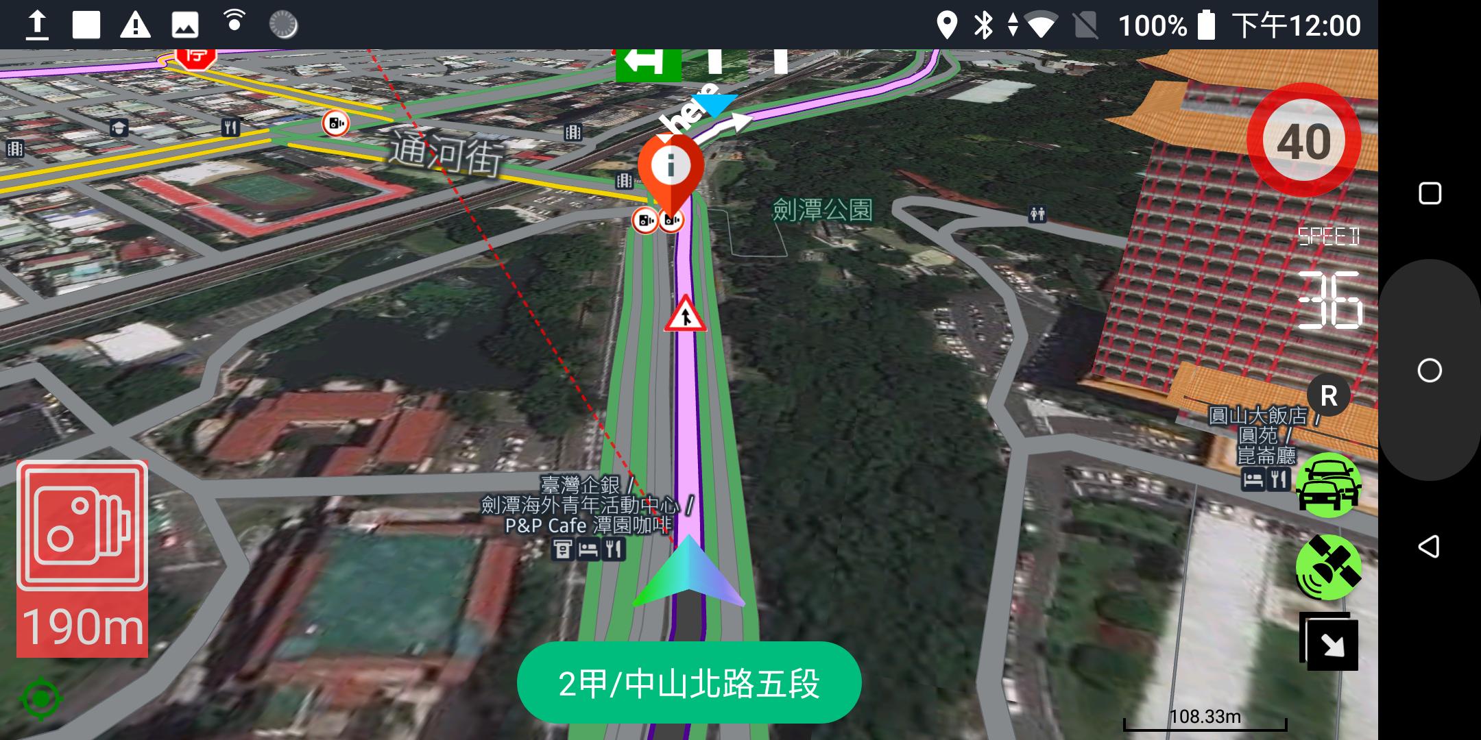 Junction view, lane info and speed camera alert.