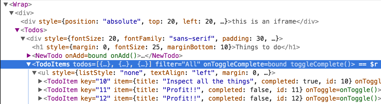 React Developer Tools lets you inspect the React component hierarchy, including component props and state.