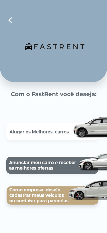 Com o FastRent você poderá disponibilizar seu carro para aluguel, assim como poderá alugar diversos automóveis de sua preferência, entre modelos e estilos, de pessoas físicas ou empresas conceituadas no mercado, com o conforto de não sair de casa para receber seu carro.