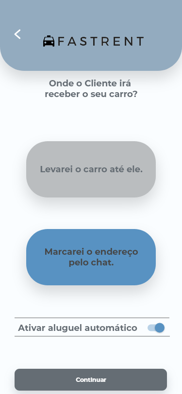 - Etapas de Cadastro de um Carro e Opções de recebimento do Veículo e valor do aluguel: