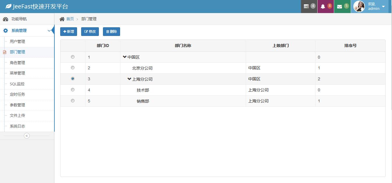 - 完善的代码生成机制,可生成entity、xml、dao、service后台代码,减少70%以上的开发任务