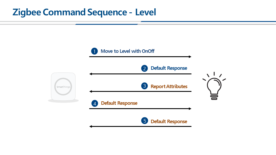 다른 command들도 on/off와 기본적인 방식은 유사하나 약간의 차이가 있다. Level control command는 Move to level with OnOff라는 packet이 가고 Report Attributes를 통해 update된 Wafer의 상태 정보를 확인할 수 있다