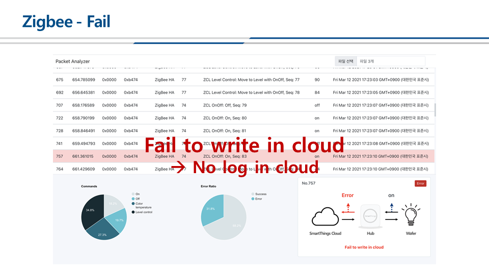 Zigbee를 선택하고 실패한 패킷을 선택했을 경우 (Fail to write in cloud)