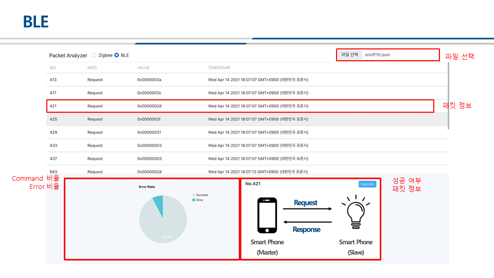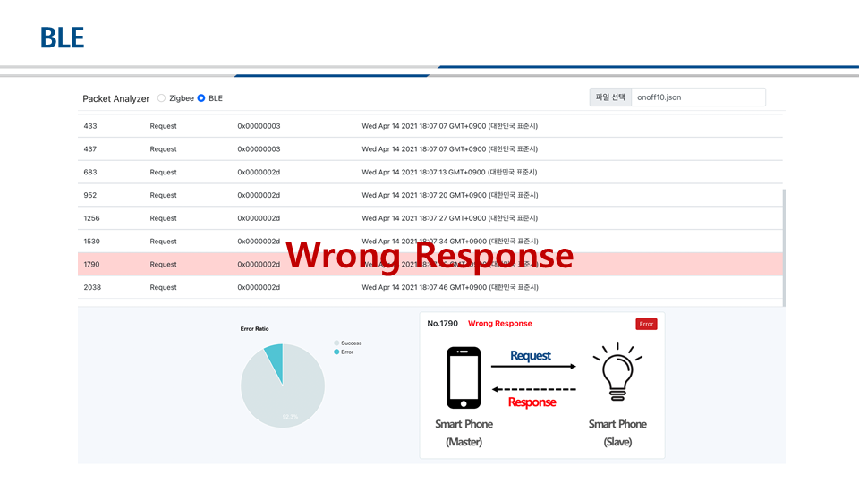 이 프로젝트의 결과물인 무결성 검증 웹어플리케이션을 통해 사용자와 IoT 장치 간 명령/응답 전달과정 및 동작에 대한 무결성 검증을 할 수 있다. 이 웹어플리케이션은 에러 발생 구간 및 command의 비율 정보를 제공한다. 즉, Zigbee와 BLE 통신 과정을 모르더라도 에러를 확인할 수 있다. 따라서 이는 장치 test에 활용할 수 있을 뿐만 아니라 개발 과정에서의 에러 확인도 가능하다.