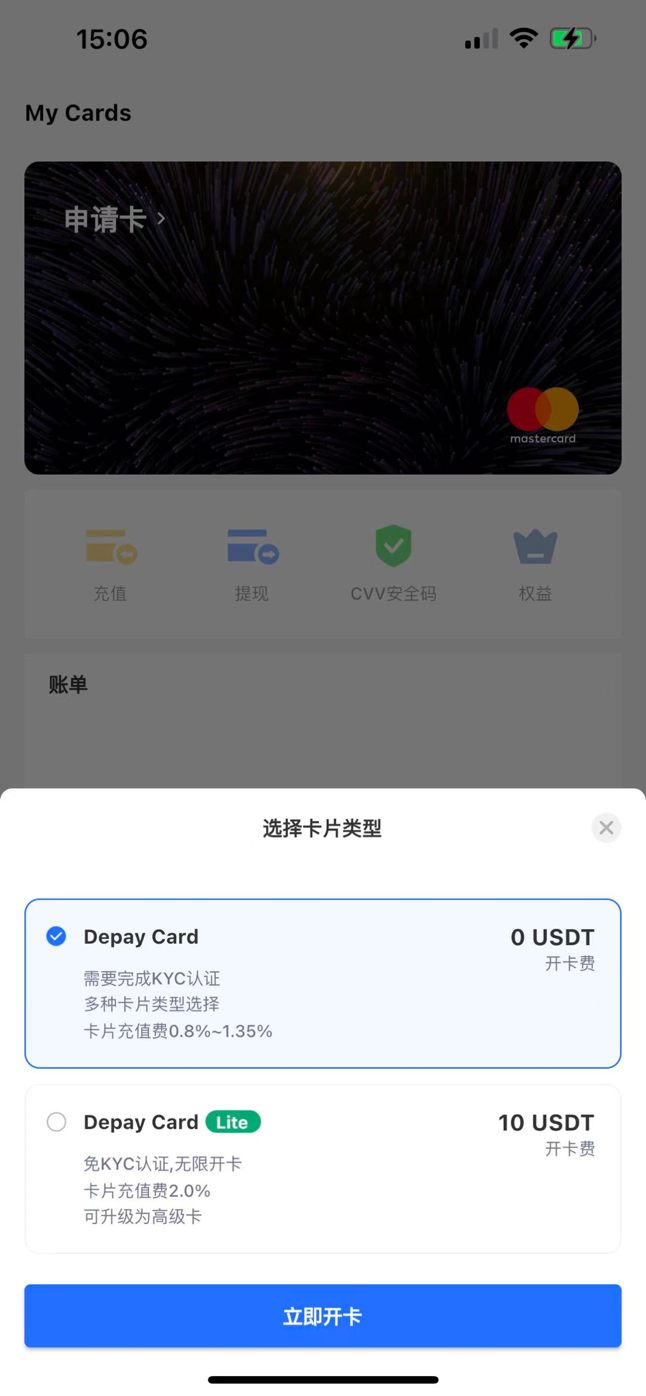- 申请1张虚拟信用卡(选Depay,群里小伙伴都是用它)