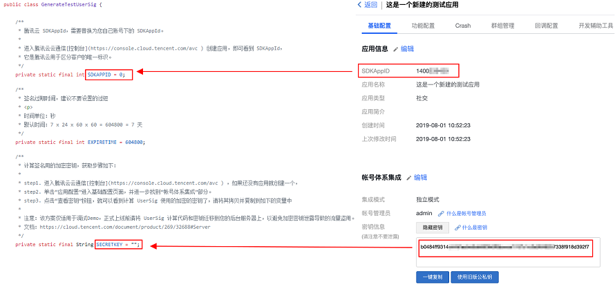 GenerateTestUserSig文件中的相关参数: