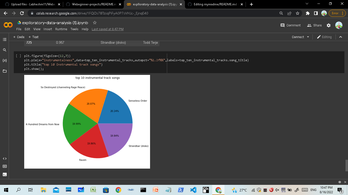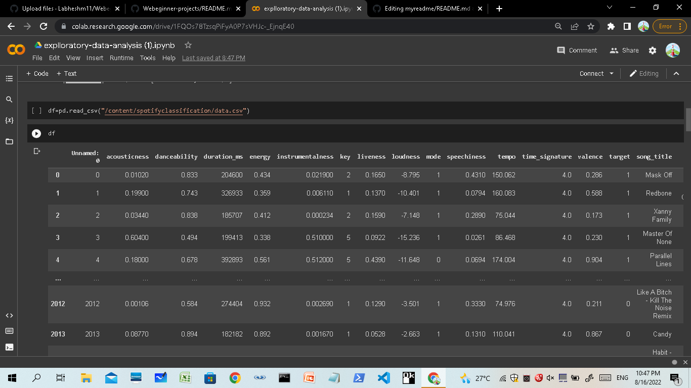 Exploratory Data analysis (Spotify dataset) Description This is a eda which makes us understand the basic fundamentals in the spotify dataset Technologies Python-(pandas,numpy,matplotlib,Kaggle(dataset)