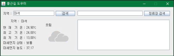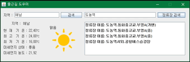 ● 지역별 날씨 확인 및 원하는 버스 정류장의 버스 도착정보 확인