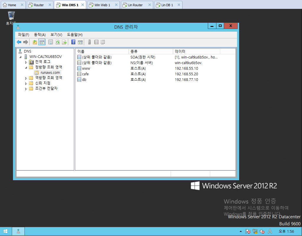 → 서버 IP들의 DNS주소를 192.168.55.10으로 설정