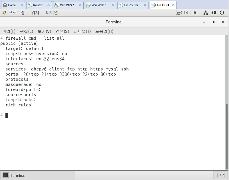 → mariaDB 사용 방화벽에 3306포트와 mysql 서비스 등록