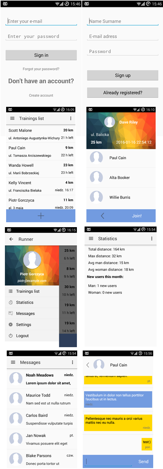 ####Krótki opis działania aplikacji Aplikacja ma na celu umożliwienie jej użytkownikom łatwej komunikacji w celu ustalenia wspólnych treningów biegowych, dzięki implementacji następujących funkcjonalności: