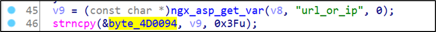 - Modify the wanIndex field in the HTTP request body to 0, then inject the command to be executed in the url_or_ip field, and finally send the data packet, the command is successfully executed.