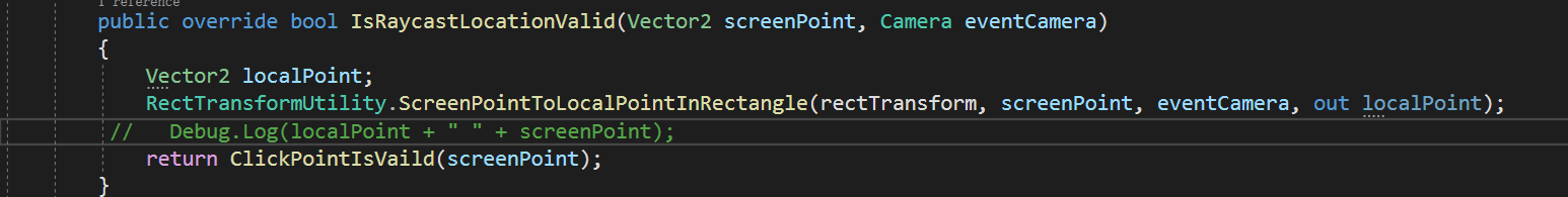 1. IsRaycastLocationValid(Vector2 screenPoint, Camera eventCamera) :重写的检测点击是否有效的方法