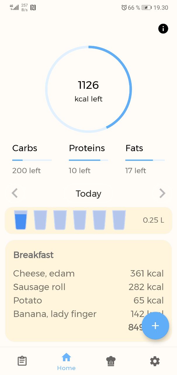 Calorie tracking app written in Kotlin using Architecture Compontents such as Dagger, Room, MVVM, Coroutines and Data binding. It also supports recipe search through API and has beautiful statistic tools. App uses Firebase SDK: Firestore, Analytics, Crashlytics, Cloud Messaging and Authentication.