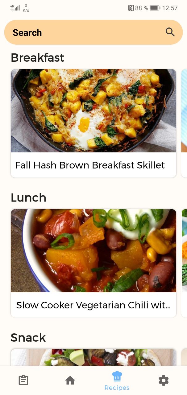 | Main Fragment | Recipes Fragment |