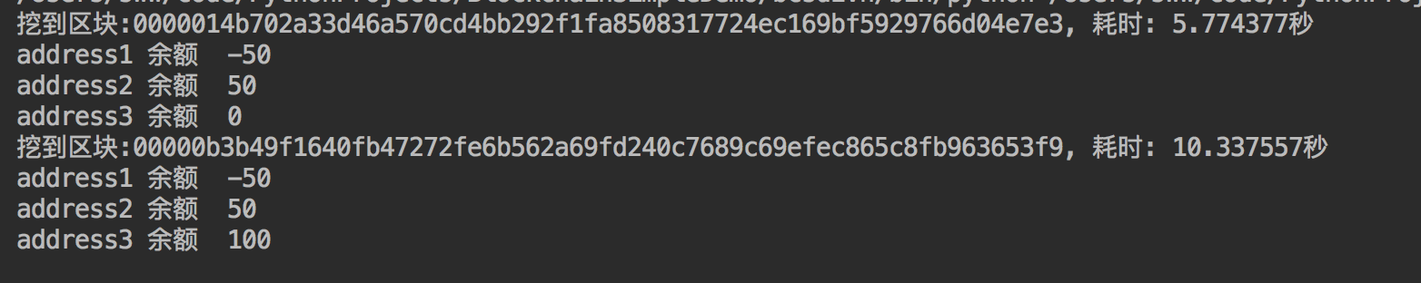 print('address3 余额 ', blockChain.get_balance_of_address('address3'))