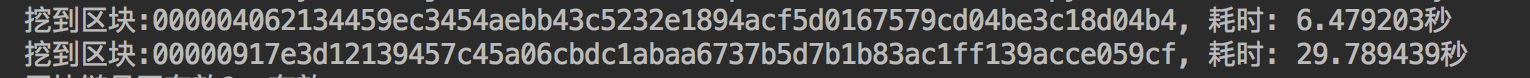 print("挖到区块:%s, 耗时: %f秒" % (self.hash, time.clock() - time_start))