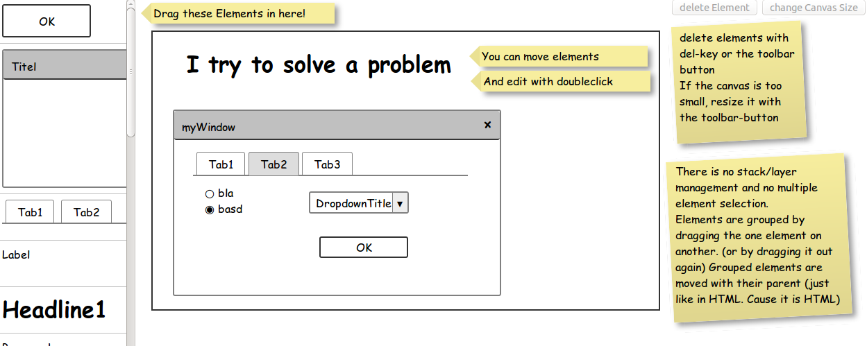 The tool is meant to allow to quickly create mockups of interfaces in order to communicate ideas.