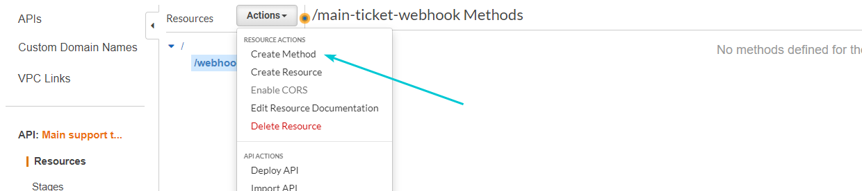 Open AWS API Gateway Panel and edit the API you just created by clicking on it.