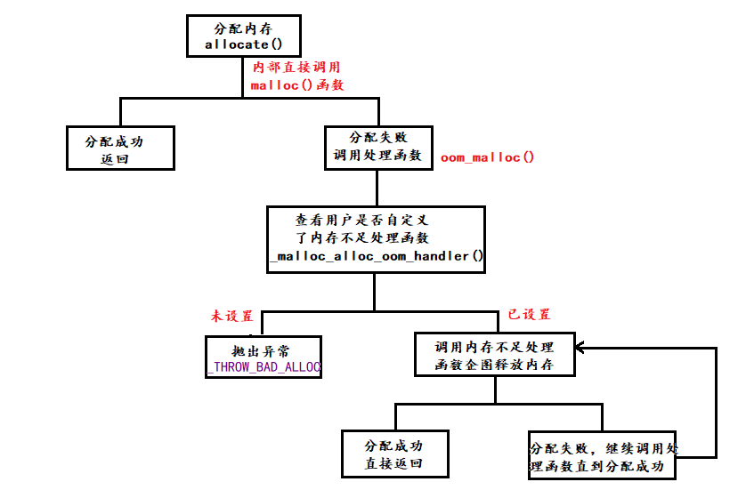 内存管理机制 系统有一个记录空闲内存地址的链表,当系统收到程序申请时,遍历该链表,寻找第一个空间大于申请空间的堆结点,删 除空闲结点链表中的该结点,并将该结点空间分配给程序(大多数系统会在这块内存空间首地址记录本次分配的大小,这样delete才能正确释放本内存空间,另外系统会将多余的部分重新放入空闲链表中) 只要栈的剩余空间大于所申请空间,系统为程序提供内存,否则报异常提示栈溢出。(这一块理解一下链表和队列的区别,不连续空间和连续空间的区别,应该就比较好理解这两种机制的区别了)