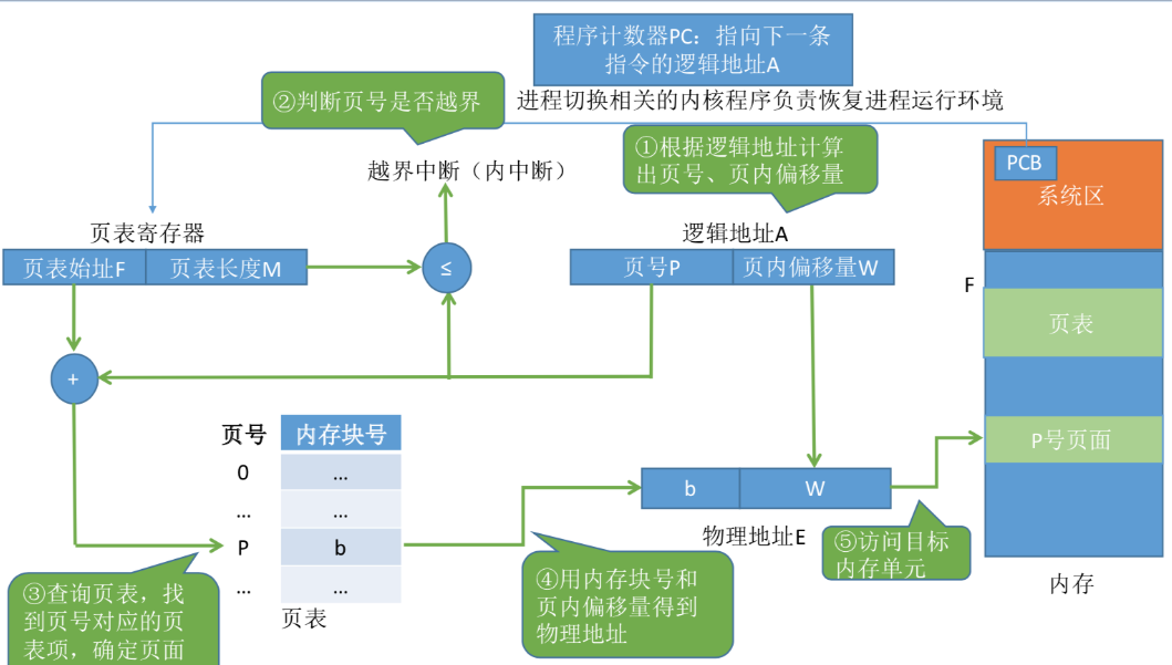这些页被映射到物理内存,但不需要映射到连续的物理内存,也不需要所有页都必须在物理内存中。当程序引用到不在物理内存中的页时,由硬件执行必要的映射,将缺失的部分装入物理内存并重新执行失败的指令。