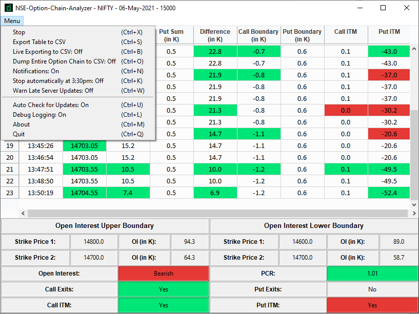 The program continuously retrieves and refreshes the option chain giving near real-time analysis to the traders