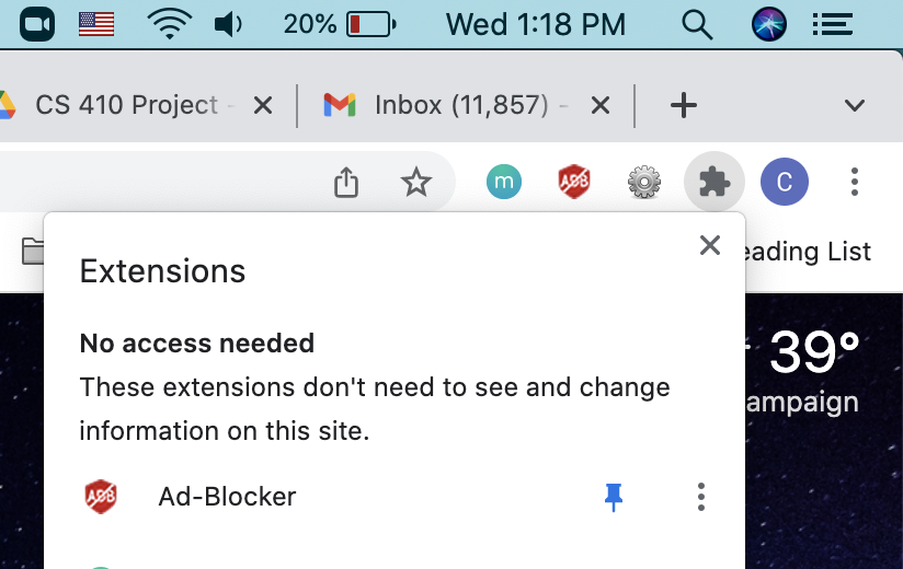 - You need to now click on the extensions button again in the top right corner and pin Rice to your browser bar.