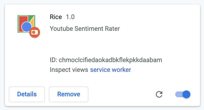 - Click on the Rice extension icon in the top right corner. You should see a square with a button in the middle.