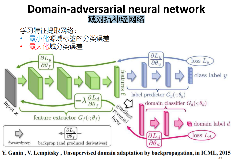 - Feature extractor: extract image features, maximize label classification accuracy and minimize domain classification accuracy;