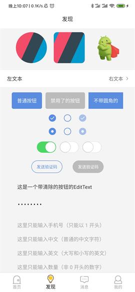 • 界面样式规范:项目的严格按照 Material Design 设计进行配色,统一和规范Button和EditText控件样式