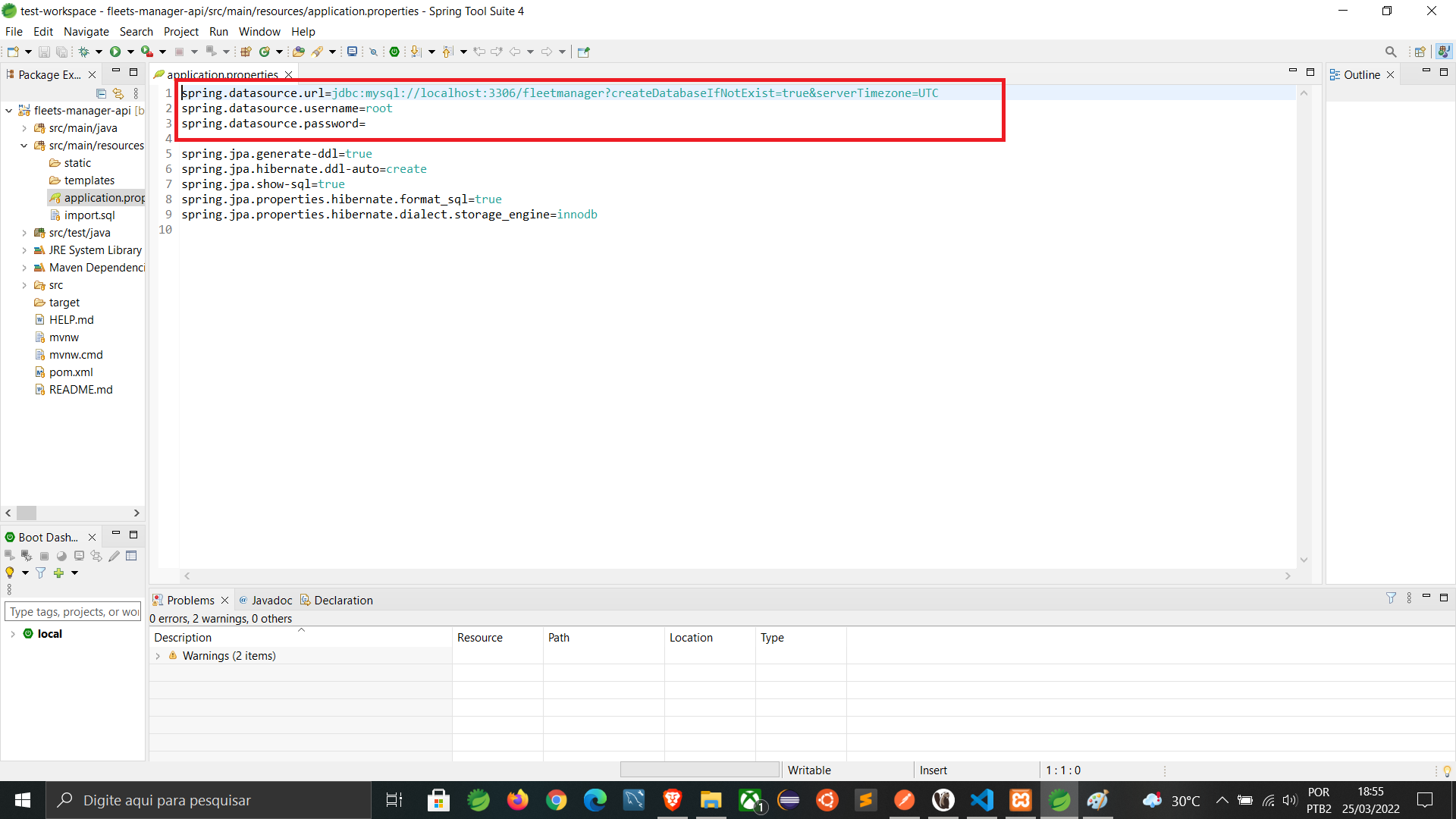 3. Open the file /fleets-manager-api/src/main/resources/application.properties and setup your MysSql connection credentials