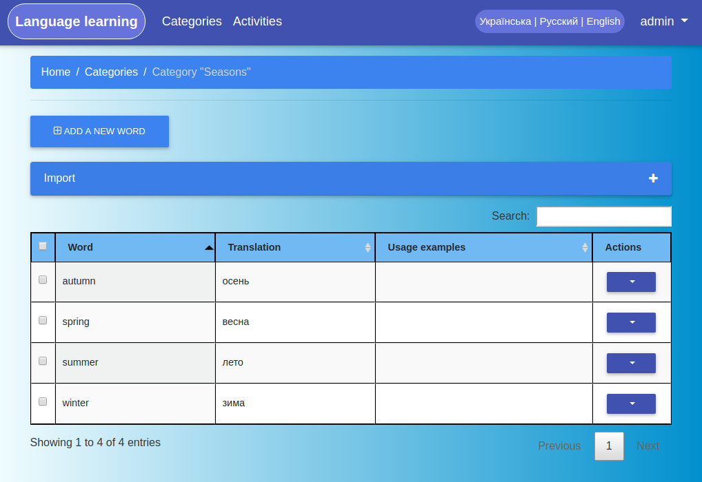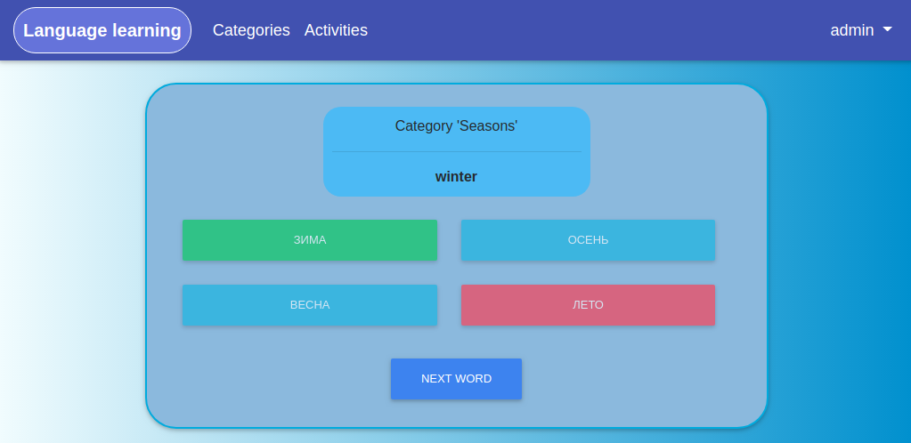 This project has been mainly done for personal purposes: to use it for learning foreign languages and get hands-on experience on used technologies listed below.