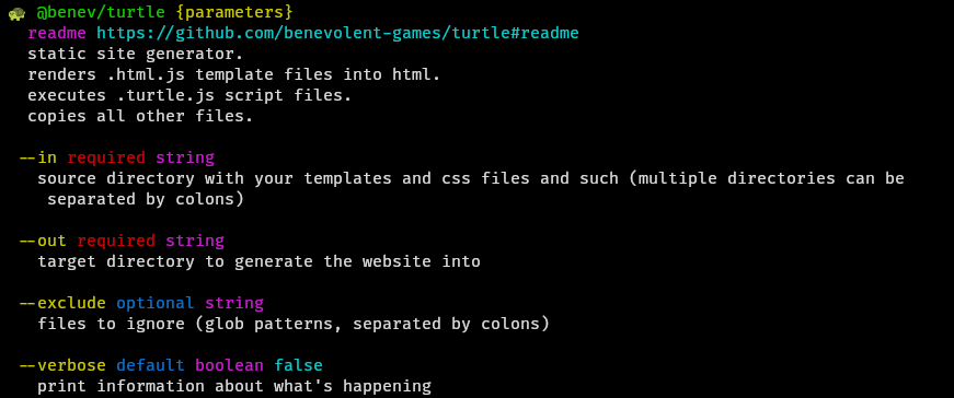 npx @benev/turtle --helpturtle will sniff out your .html.js files as inputs, then output matching .html files.