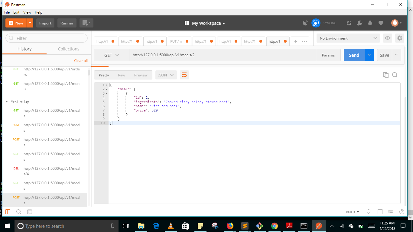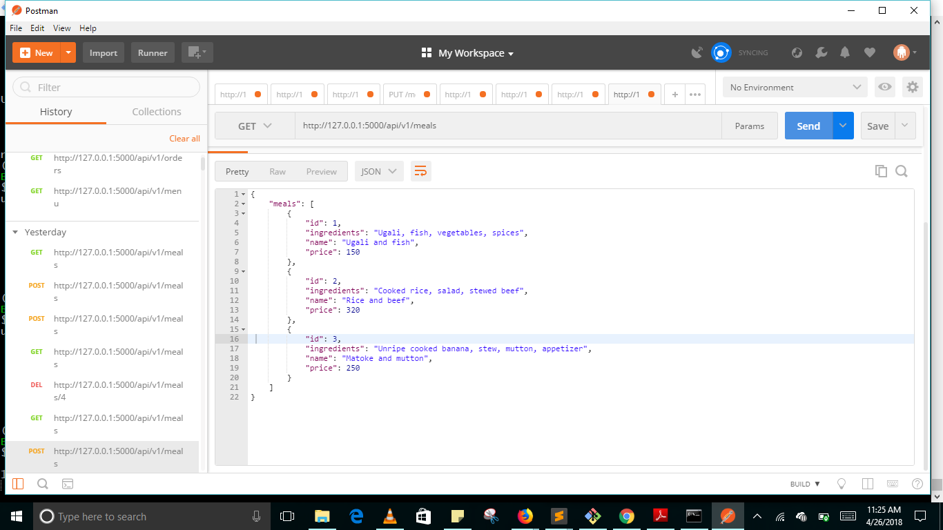 - /api/v1/meals/int:id: To get meal using its meal id, and update or delete it