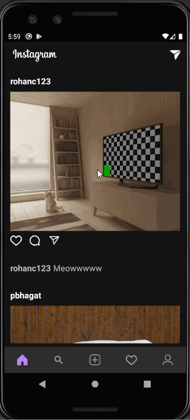 - The user should switch between different tabs - viewing all posts (feed view), compose (capture photos form camera) and profile tabs (posts made) using fragments and a Bottom Navigation View