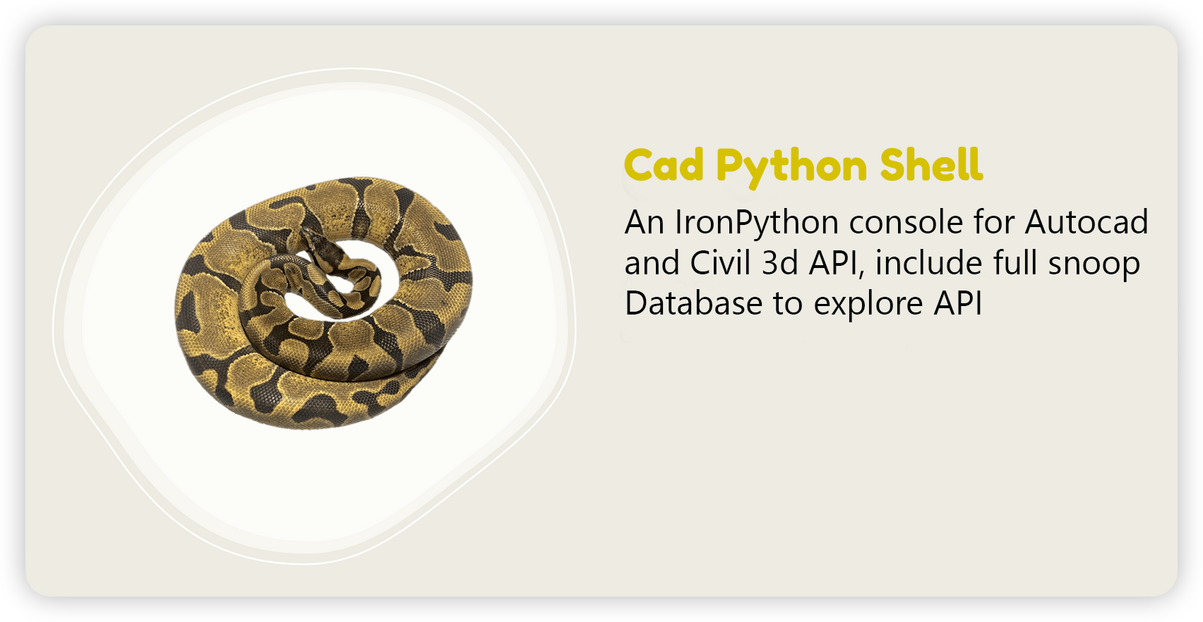 • snoop(obj) - Snoop Object by Python Console or Execute python code In CAD or Civil3D