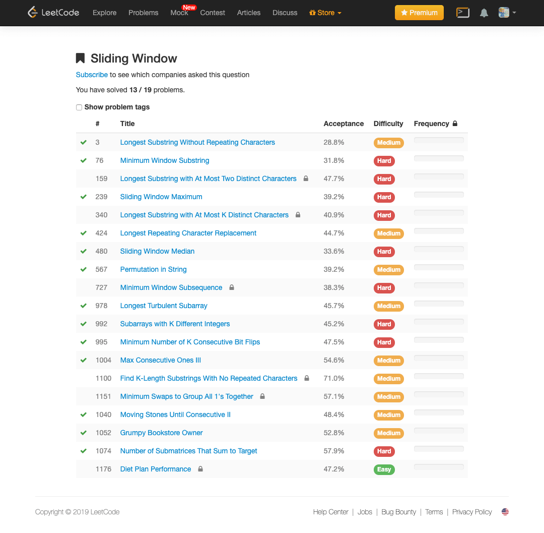• 滑动窗口经典题。第 239 题,第 480 题。